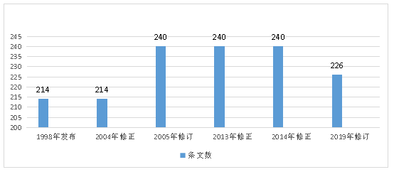 法律的修正一般指立法机关对法律部分条款进行的小幅度修改。证券法的三次修正均是对原有证券法个别条款的修改,并未增删原有证券法的条文数量;法律的修订则是指立法机关对法律进行全面系统的修改。证券法历经两次修订,不仅大幅度修改了原有证券法的内容,而且条文数量也从最初的214条增加至240条,又减少至现在的226条。下面着重介绍下我国首部证券法及证券法两次修订的基本情况。
